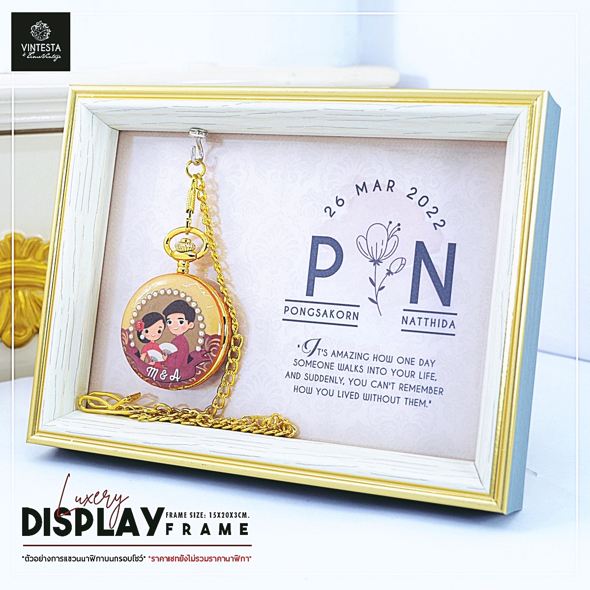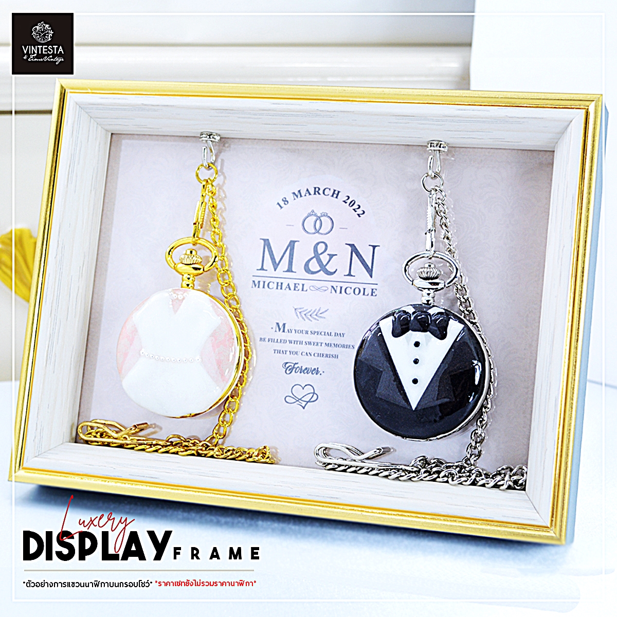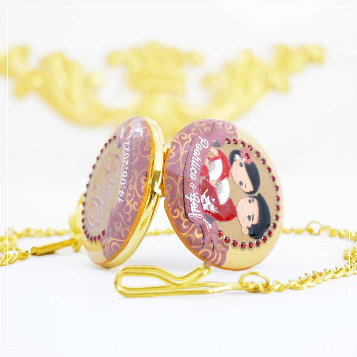 ของขวัญแต่งงานสไตล์จีน ดีไซต์ คู่บาว- สาว อาหมวย-อาตี๋ ออกแบบมาเป็น ของขวัญแต่งงานของขวัญแต่งงานมอบให้คนจีน นาฬิกาพก ของขวัญสุดหรู ลูกค้าสามารถแจ้งอักษรย่อของตัวเองได้ตามต้องการ) ฝาหลังนาฬิกาเป็นสามารถใส่รายละเอียดของ ว/ด/ป หรือ อักษรย่อ ของวันพิเศษๆได้ตามต้องการ ตัวเรือนขนาด 4.7ซม. เป็นระบบถ่านควอทซ์ เครื่องญี่ปุ่น หน้าปัดเป็นประดับคริสตัลมุกชมพูเข้ม เหมาะซื้อของขวัญให้เพื่อนชาวจีน
