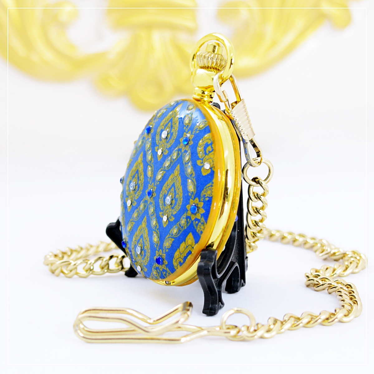 ของที่ระลึกให้ลูกค้าต่างชาติ ของขวัญแบบไทยๆ หรู คลาสสิค รุ่นนาฬิกาพกลายไทย ลวดลายกนกไทยครามฝรั่ง ระบบนาฬิกากลไกไขลานแบบโบราณ ของที่ระลึกไทยๆ ฟังชั่นพิเศษเฉพาะนาฬิกาพกกลไกไขลานพรีเมียม เปิดได้ 2 ด้าน Double Full Hunter Pocket Watch in Thai Classic Design อีกทั้งยังสามารถใส่ชื่อหรือข้อความได้ที่ฝาหลังอีกด้วย