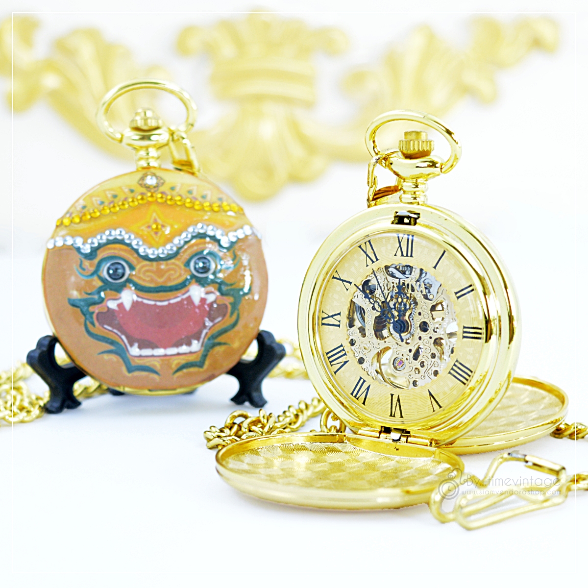 ของที่ระลึกไทย l ของที่ระลึกของไทยรามเกียรติ์ 2567 ของขวัญโขนไทย คอลเลคชั่น ของที่ระลึกโขนไทย ลวดลายพักตร์สุวรรณวานร ของขวัญหัตกรรมไทย ลงสีวาดเพ้นท์ด้วยช่างฝีมือ รุ่นนาฬิกาพกลายไทย ระบบนาฬิกากลไกไขลานแบบโบราณ ของที่ระลึกไทยๆ ฟังชั่นพิเศษเฉพาะนาฬิกาพกกลไกไขลานพรีเมียม เปิดได้ 2 ด้าน อีกตัวเรือนนาฬิกายังสามารถสลักชื่อหรือข้อความได้ในส่วนของหลังอีกด้วย