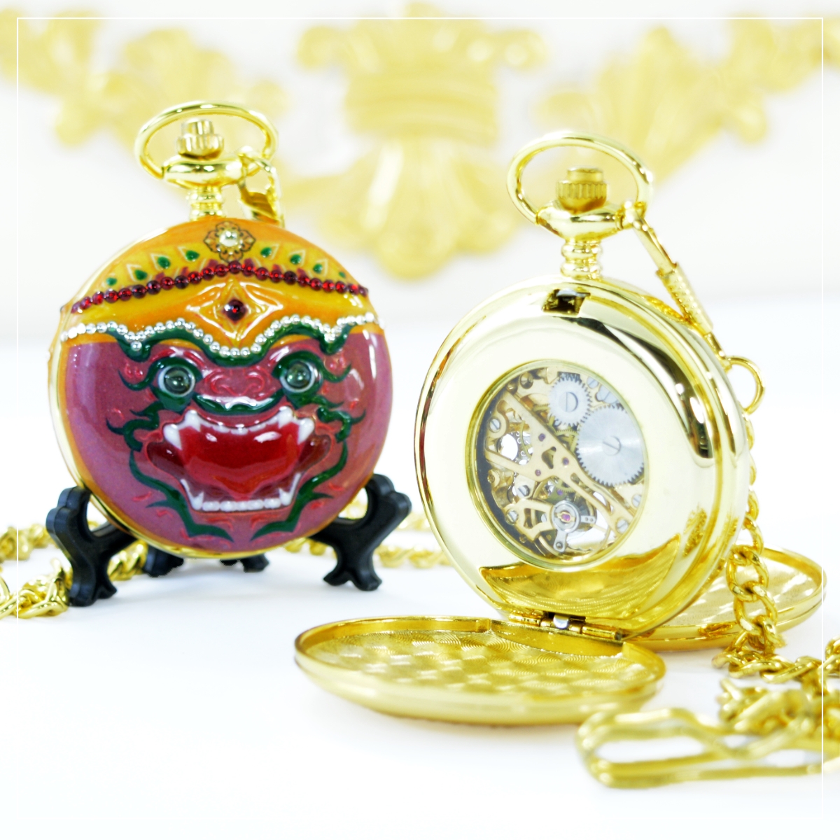 ของที่ระลึกไทย l ของที่ระลึกโขนไทย ของฝากไทยรามเกียรติ์ 2567 ของขวัญแบบไทย คอลเลคชั่น ของที่ระลึกโขนไทย ลวดลายพักตร์สุแดงวิมลวานร ของขวัญหัตกรรมไทย ลงสีวาดเพ้นท์ด้วยช่างฝีมือ รุ่นนาฬิกาพกลายไทย ระบบนาฬิกากลไกไขลานแบบโบราณ ของที่ระลึกไทยๆ ฟังชั่นพิเศษเฉพาะนาฬิกาพกกลไกไขลานพรีเมียม เปิดได้ 2 ด้าน อีกตัวเรือนนาฬิกายังสามารถสลักชื่อหรือข้อความได้ในส่วนของหลังอีกด้วย